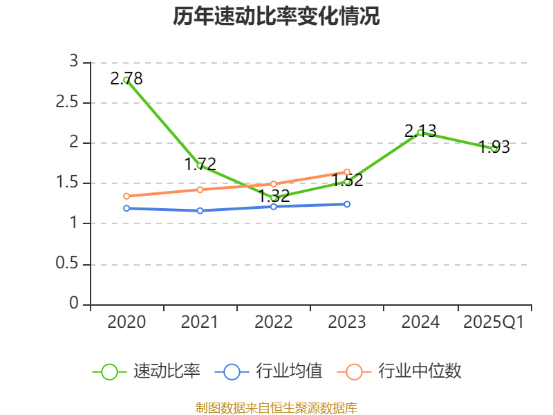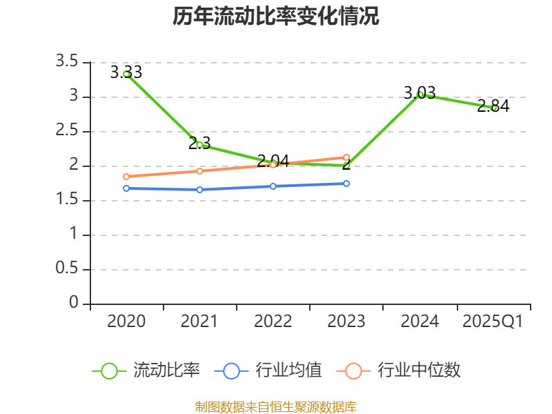 2025年第一季度,公司流动比率为2.84,速动比率为1.93。