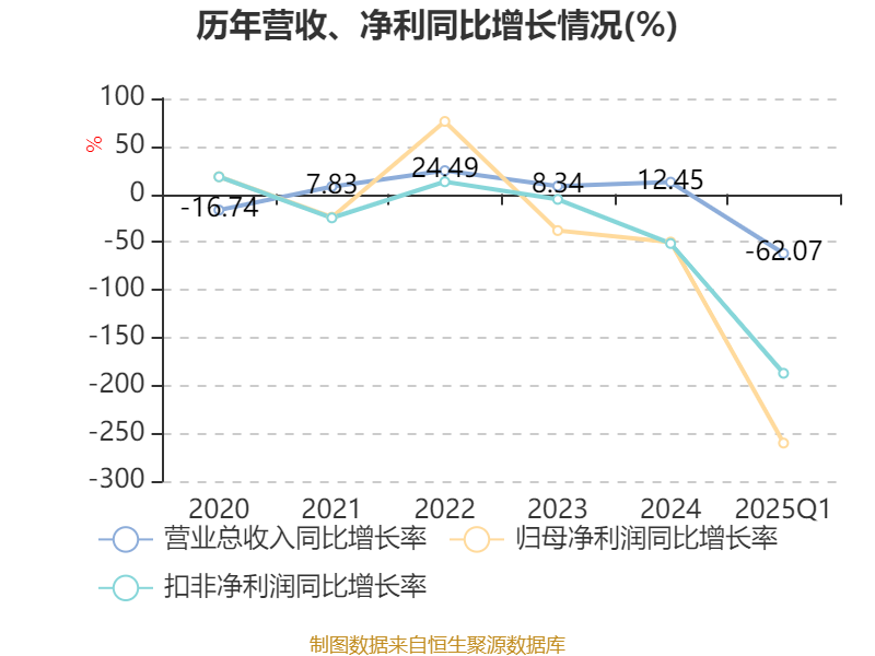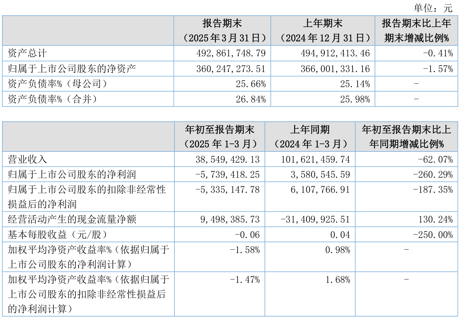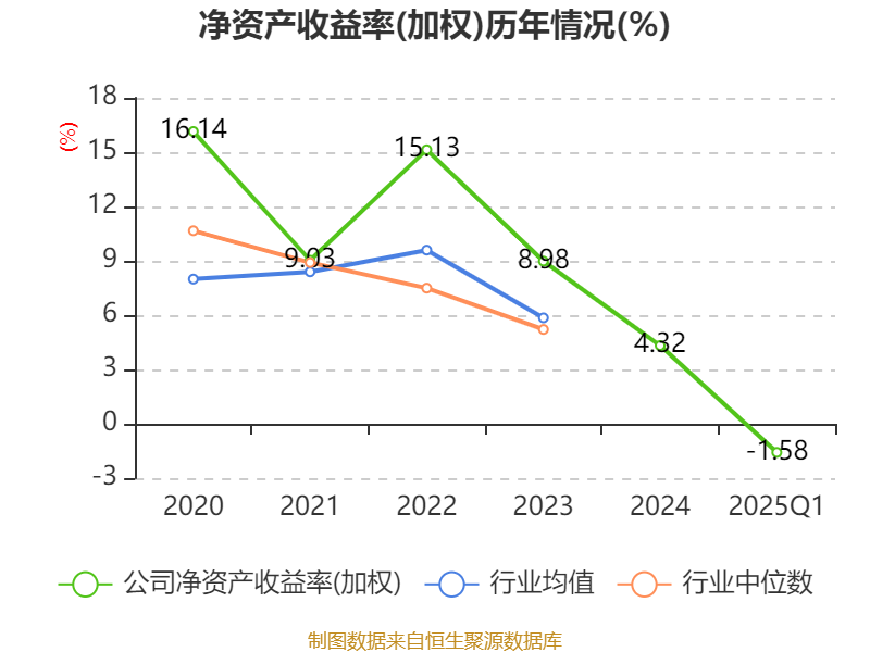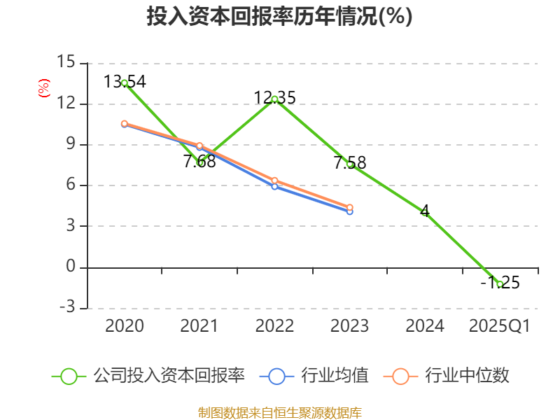 盈利能力方面, 2025年一季度公司加权平均净资产收益率为-1.58%,同比下降2.56个百分点。公司2025年第一季度投入资本回报率为-1.25%,较上年同期下降2.08个百分点。