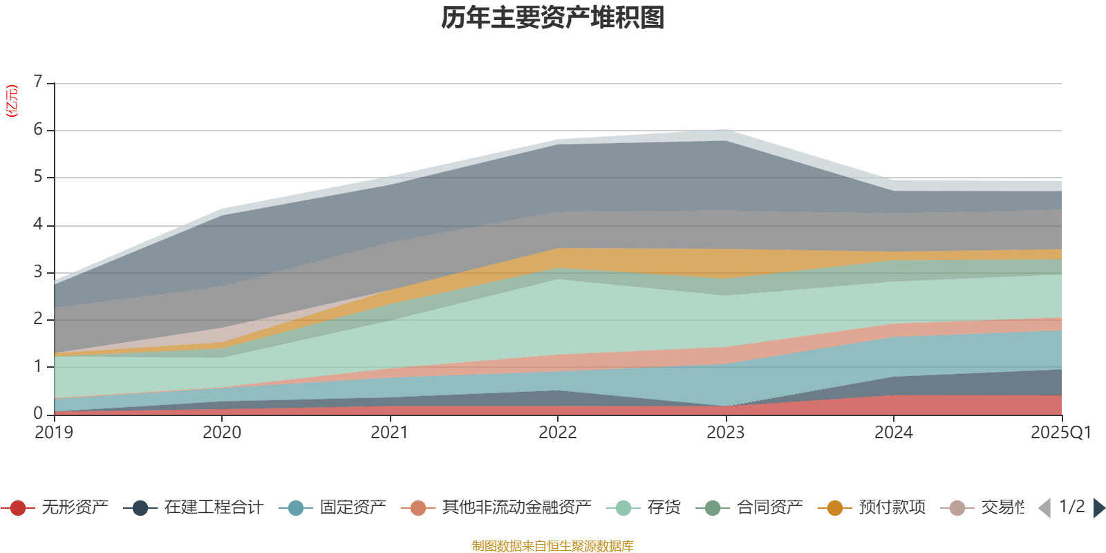 资产重大变化方面,截至2025年一季度末,公司在建工程合计较上年末增加39.83%,占公司总资产比重上升3.19个百分点;合同资产较上年末减少27.87%,占公司总资产比重下降2.53个百分点;货币资金较上年末减少16.45%,占公司总资产比重下降1.53个百分点;预付款项较上年末增加16.56%,占公司总资产比重上升0.62个百分点。