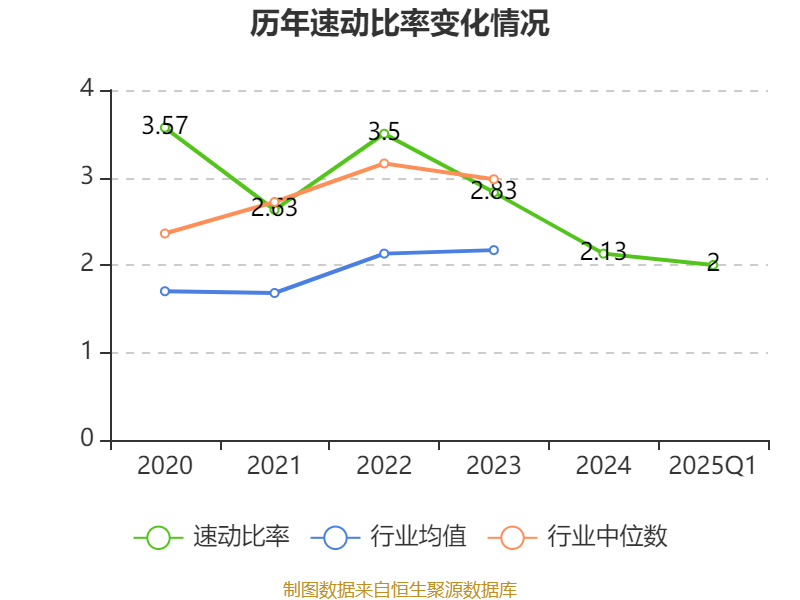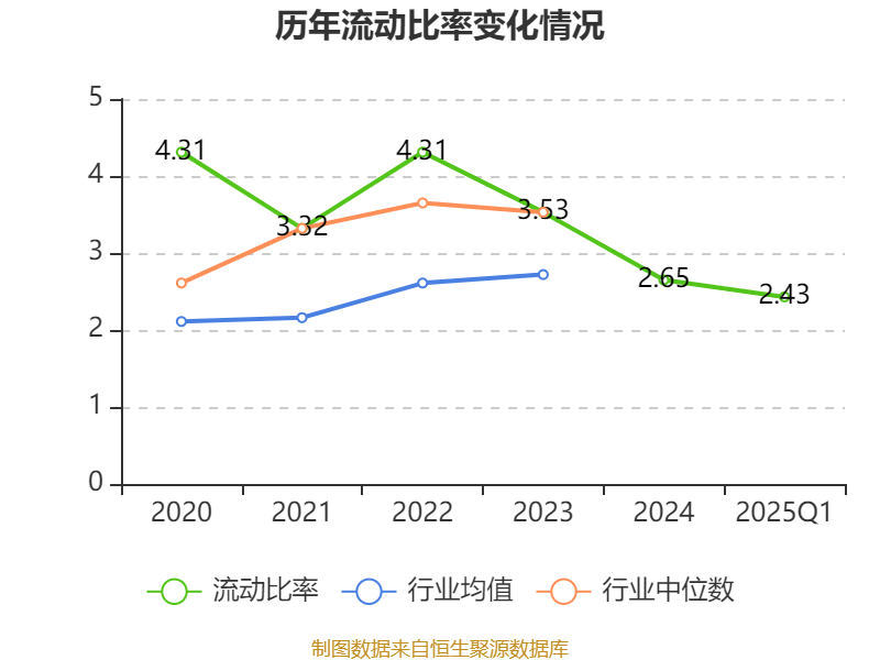 2025年第一季度,公司流动比率为2.43,速动比率为2。