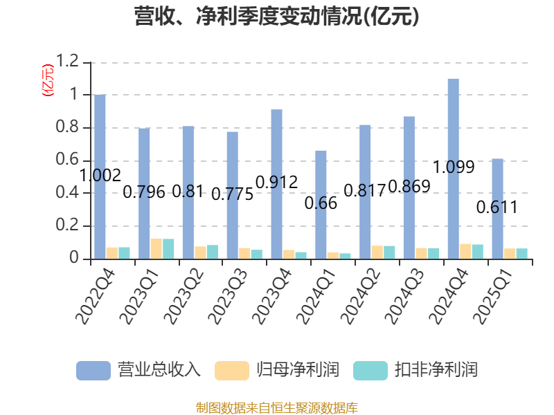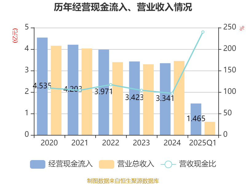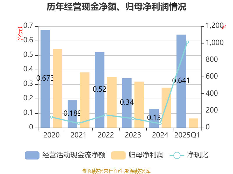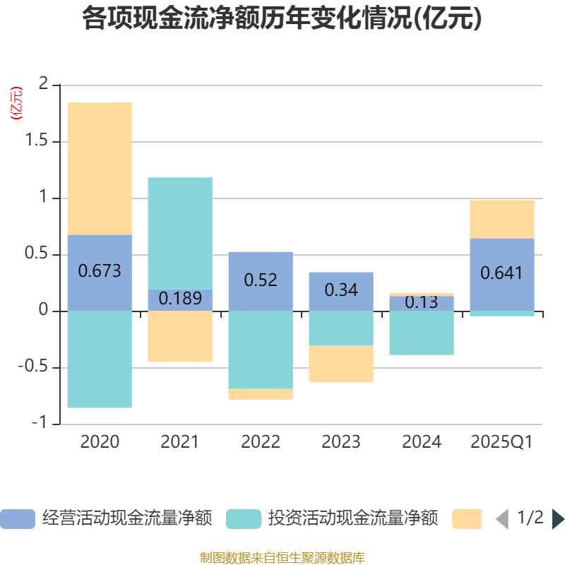 截至2025年一季度末,公司经营活动现金流净额为6409.19万元,同比增加8674.53万元;筹资活动现金流净额3369.63万元,同比增加2384.64万元;投资活动现金流净额-487.74万元,上年同期为792.88万元。