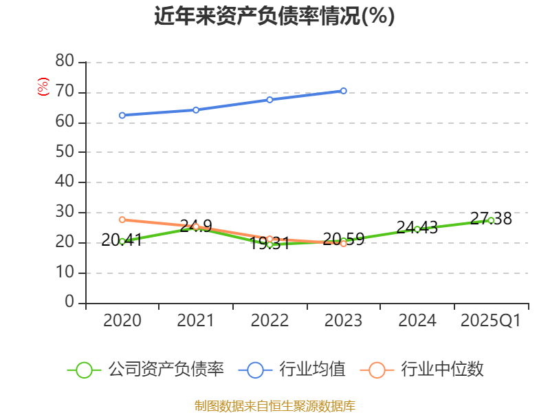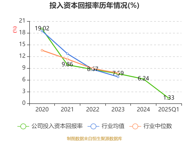 盈利能力方面, 2025年一季度公司加权平均净资产收益率为1.57%,同比上升0.58个百分点。公司2025年第一季度投入资本回报率为1.33%,较上年同期上升0.48个百分点。
