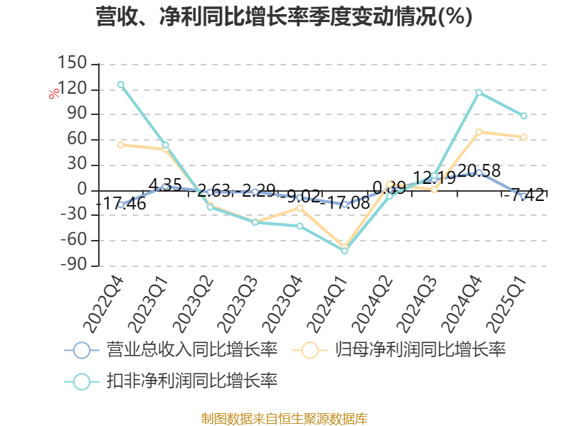资产重大变化方面,截至2025年一季度末,公司货币资金较上年末增加58.93%,占公司总资产比重上升13.7个百分点;应收票据及应收账款较上年末减少48.79%,占公司总资产比重下降9.23个百分点;其他应收款(含利息和股利)较上年末减少70.03%,占公司总资产比重下降1.38个百分点;存货较上年末减少0.64%,占公司总资产比重下降0.73个百分点。