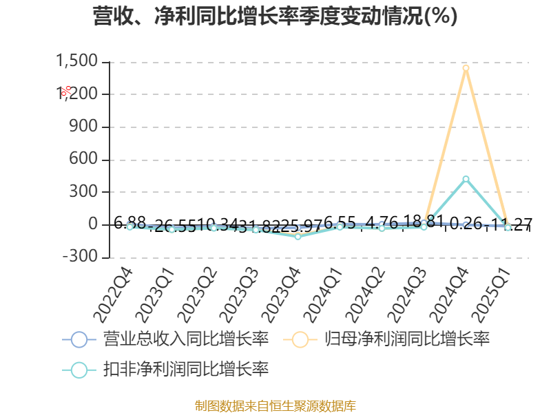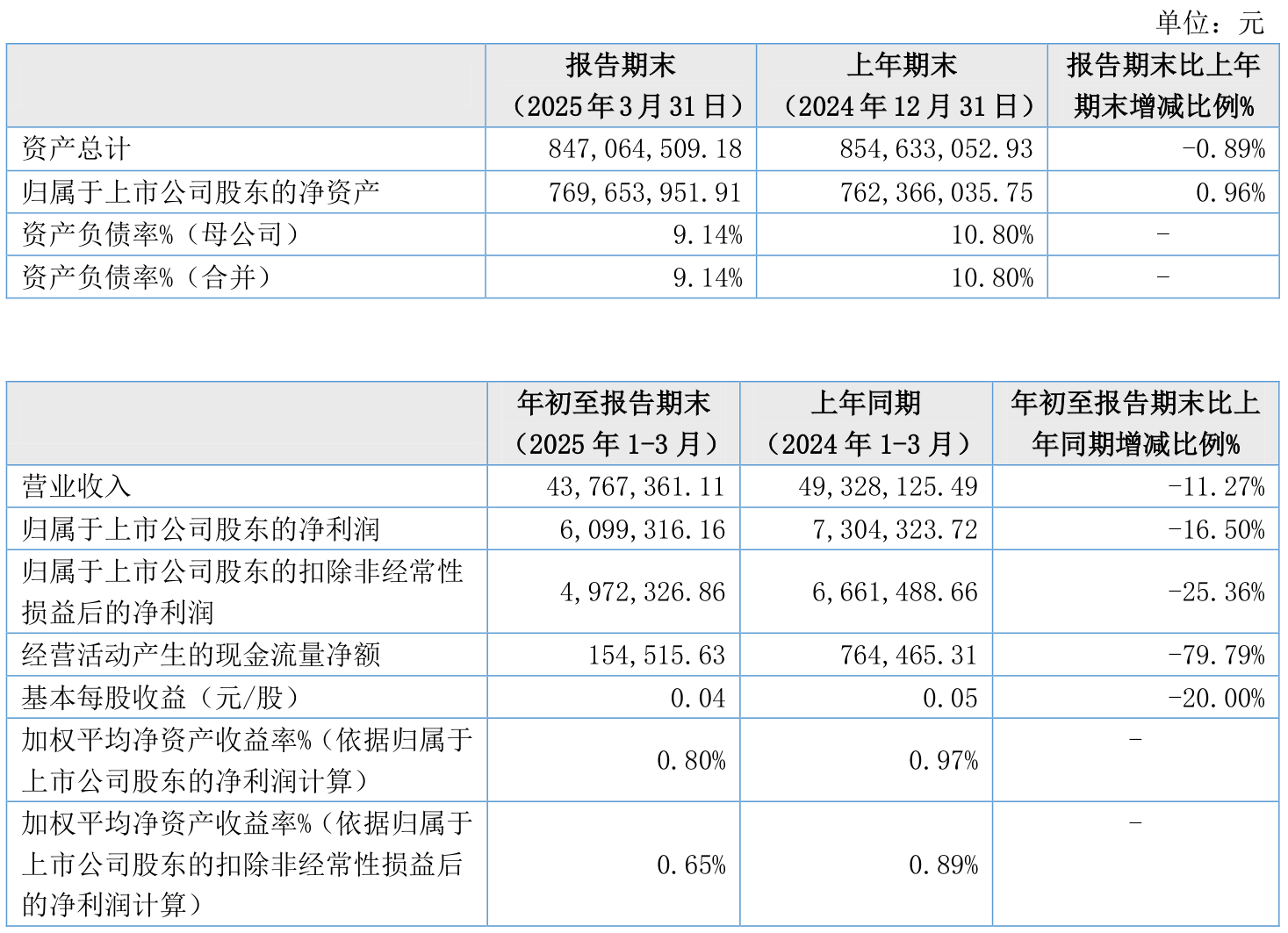 负债重大变化方面,截至2025年一季度末,公司应付票据及应付账款较上年末减少29.9%,占公司总资产比重下降0.53个百分点;短期借款较上年末减少81.78%,占公司总资产比重下降0.44个百分点;应付职工薪酬较上年末减少36.71%,占公司总资产比重下降0.28个百分点;其他应付款(含利息和股利)较上年末减少64.28%,占公司总资产比重下降0.15个百分点。
