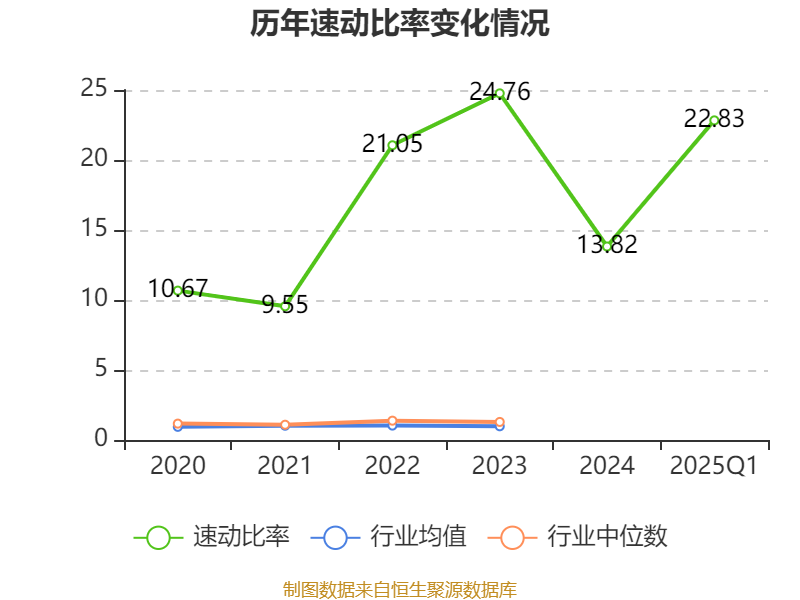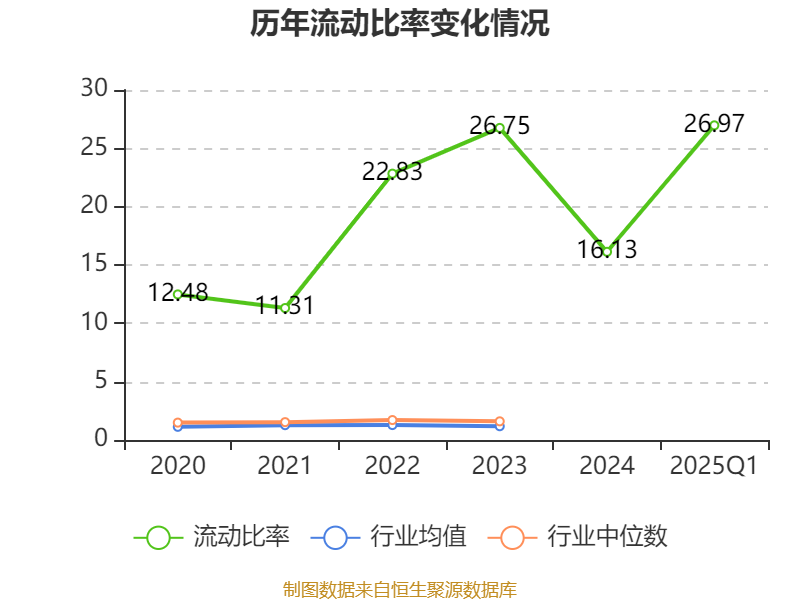 2025年第一季度,公司流动比率为26.97,速动比率为22.83。