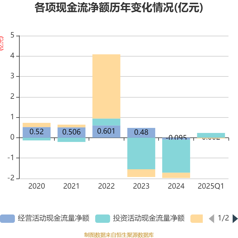 截至2025年一季度末掌上策略,公司经营活动现金流净额为15.45万元,同比下降79.79%;筹资活动现金流净额-391.22万元,同比减少361.95万元;投资活动现金流净额2307.12万元,上年同期为-6356.76万元。