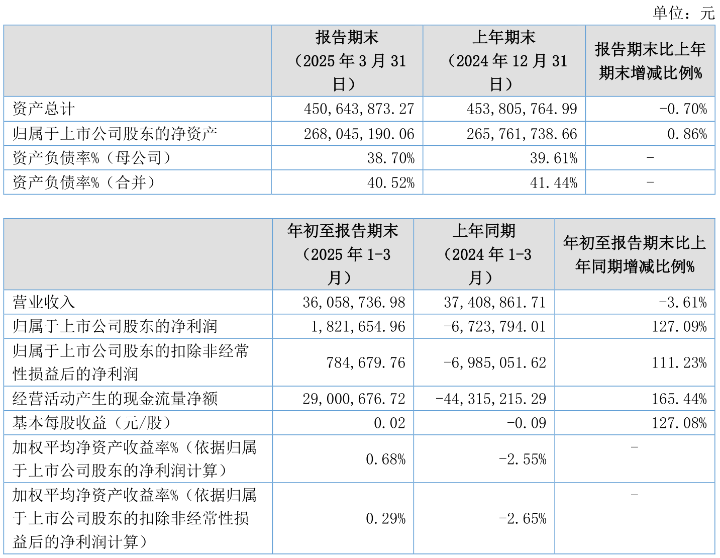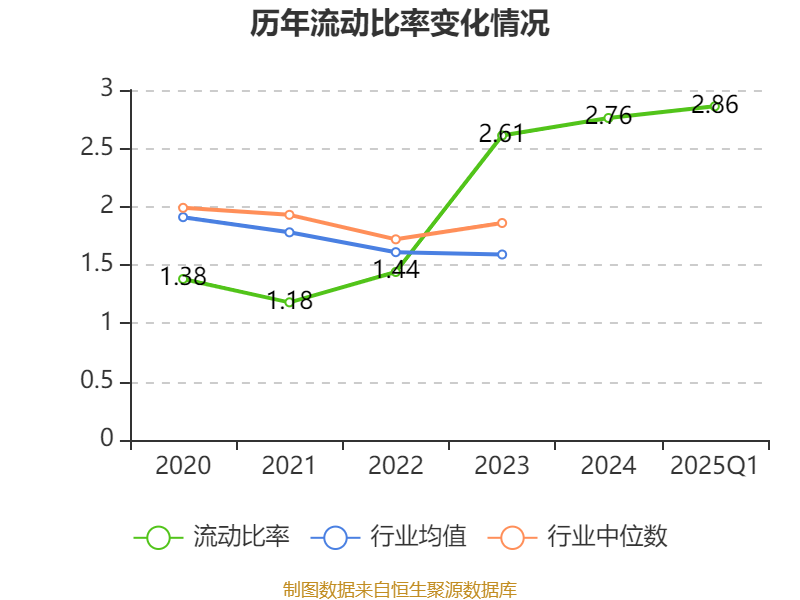 2025年第一季度,公司流动比率为2.86,速动比率为2.27。
