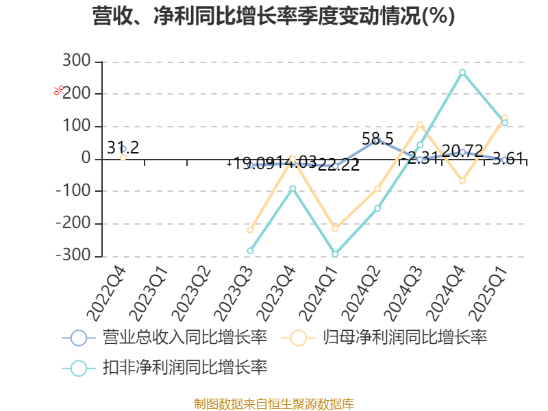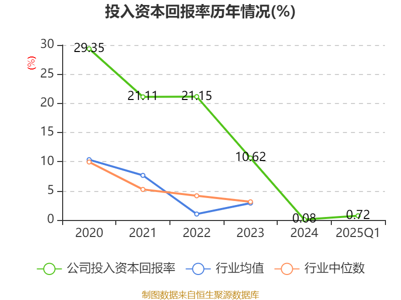 盈利能力方面, 2025年一季度公司加权平均净资产收益率为0.68%,同比上升3.23个百分点。公司2025年第一季度投入资本回报率为0.72%,较上年同期上升2.68个百分点。