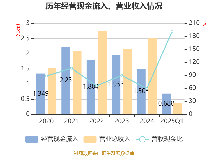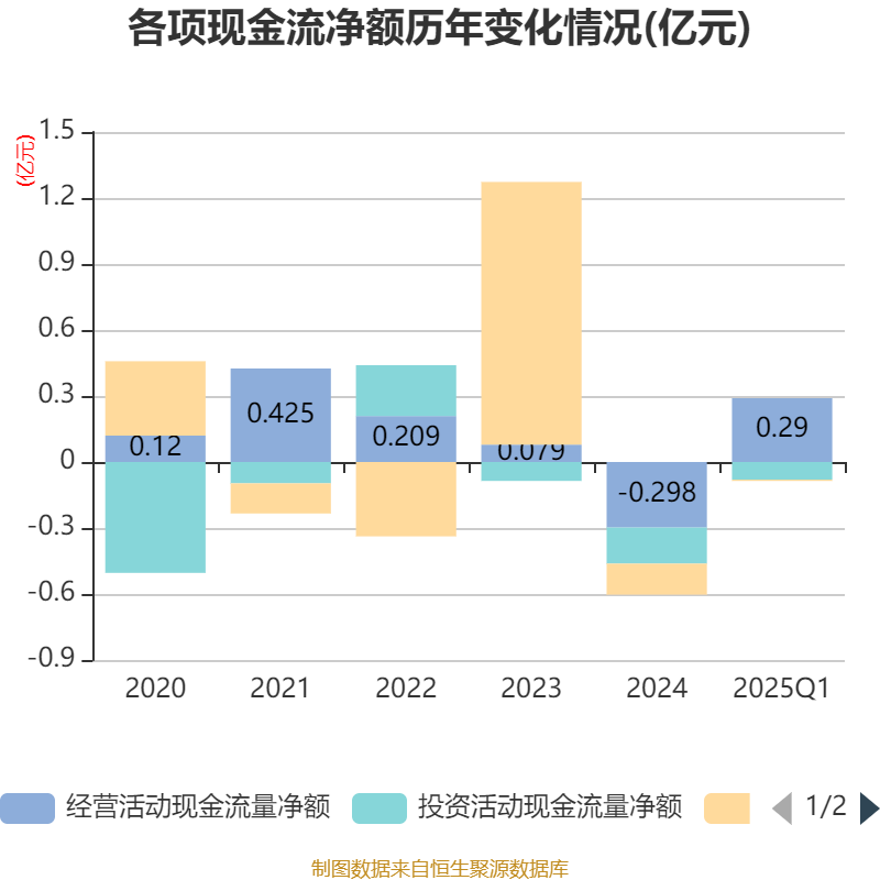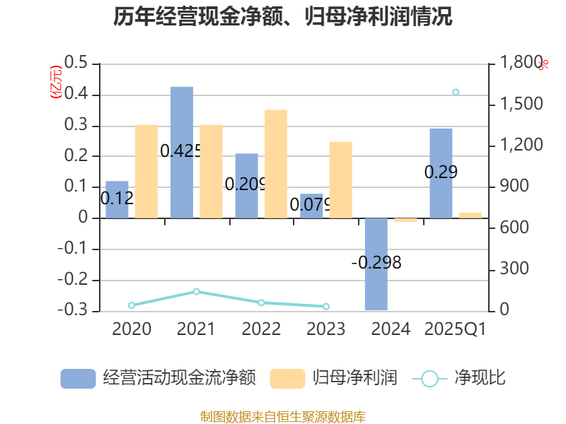 截至2025年一季度末神机策,公司经营活动现金流净额为2900.07万元,同比增加7331.59万元;筹资活动现金流净额-64.81万元,同比增加25.41万元;投资活动现金流净额-796.3万元,上年同期为-164.46万元。