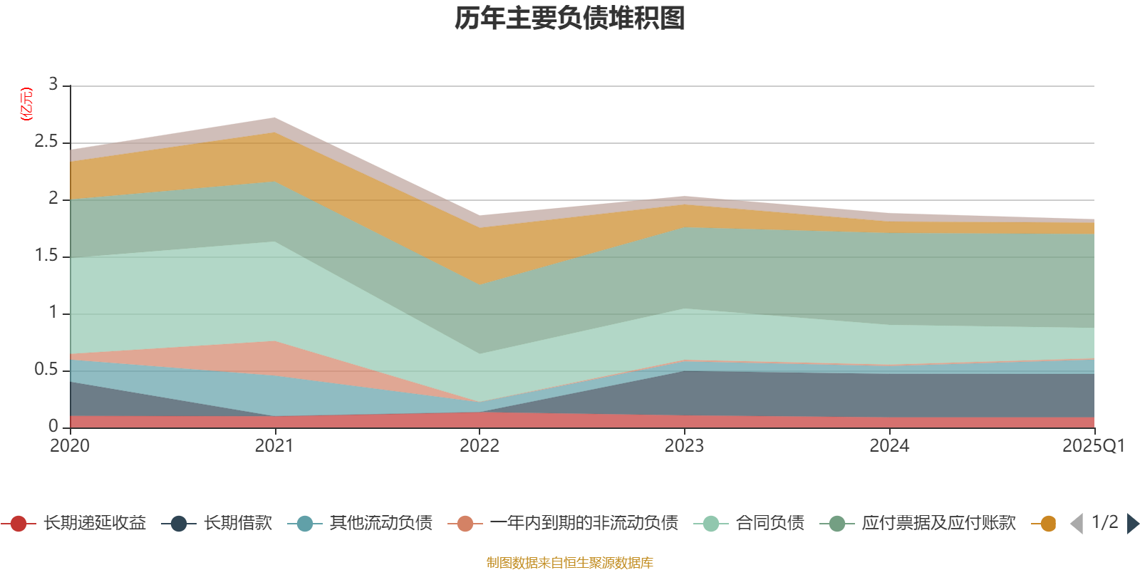 负债重大变化方面,截至2025年一季度末,公司合同负债较上年末减少23.37%,占公司总资产比重下降1.75个百分点;其他流动负债较上年末增加81.75%,占公司总资产比重上升1.27个百分点;应付职工薪酬较上年末减少81.68%,占公司总资产比重下降0.51个百分点;应付票据及应付账款较上年末增加2.06%,占公司总资产比重上升0.49个百分点。